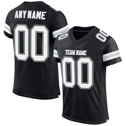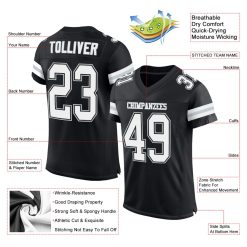 Custom Black White-Silver Mesh Authentic Football Jersey